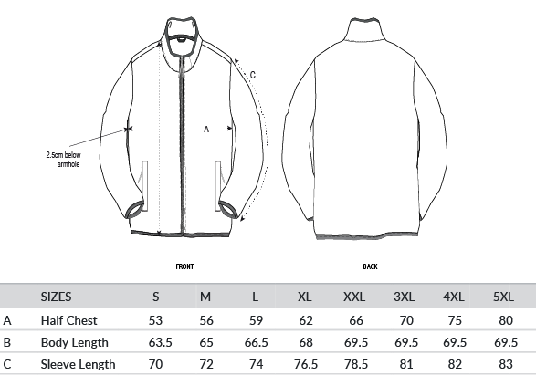 Set-in sleeves. Elastic binding at neck edge, cuffs and hem. Inside back neck grosgrain loop. Nylon coil zip with metal zip pull and cord ending. Brushed fabric with anti-pilling finish on the inside and outside. Front side welt pockets with zip opening. Inside back neck tape in recycled polyester.